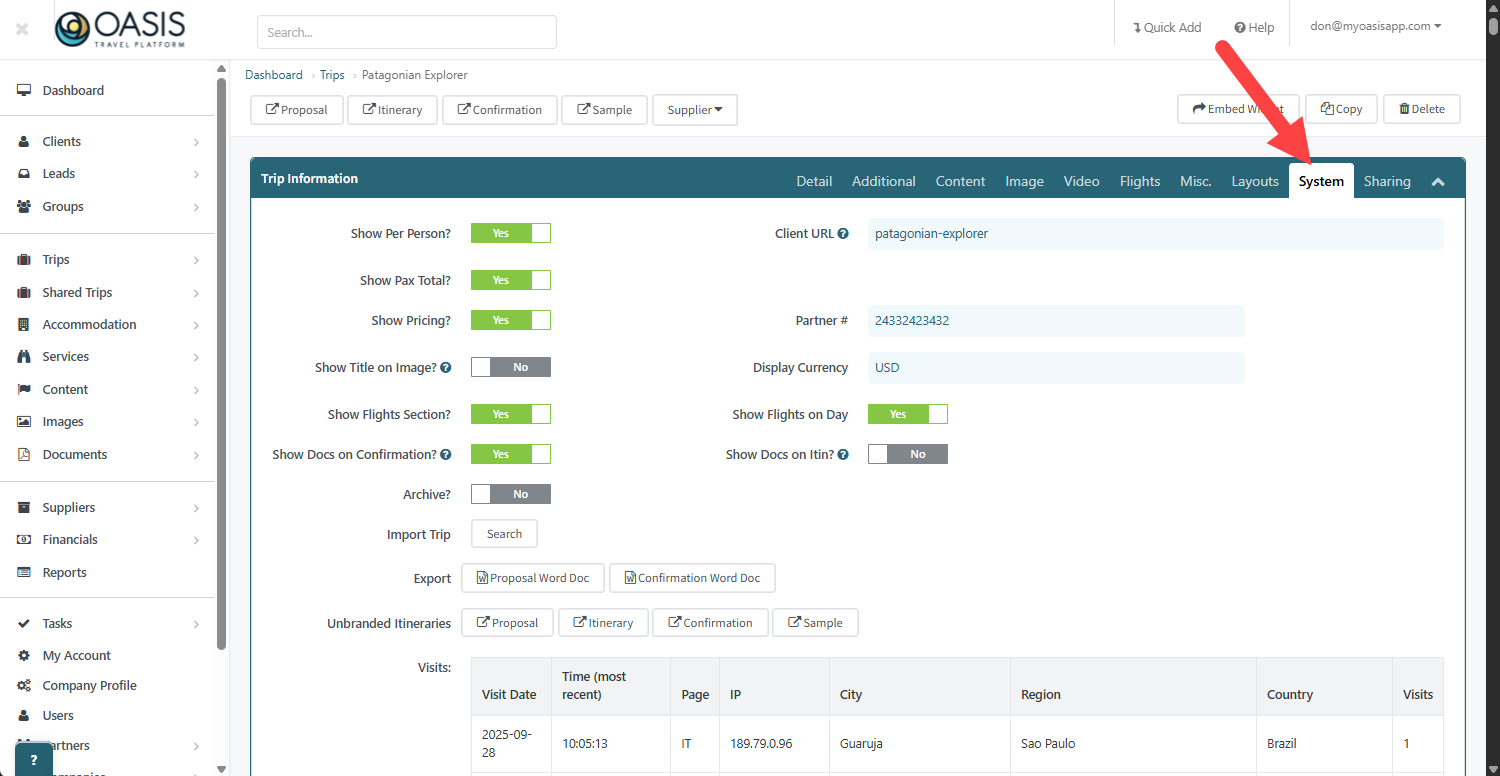 11. Under the Systems tab, has options for how the itinerary will look and what you can show or hide from the itinerary. Links to unbranded itineraries can be found here as well.