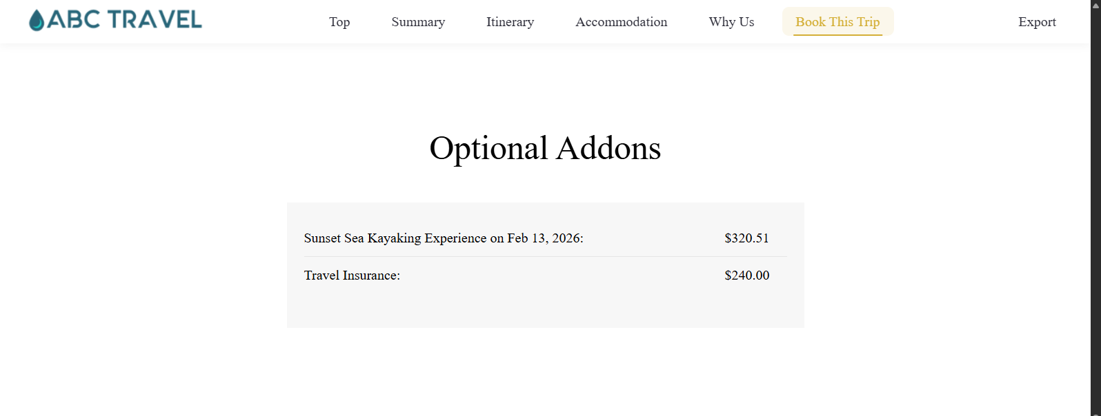 The Optional Costs feature is a tool designed to help you prepare and manage potential add-ons without impacting the trip’s financial totals. These costs are not presented to clients. They remain within the platform for planning and flexibility.